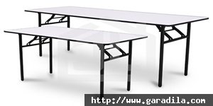Garadila Indah hanya menyediakan 1 jenis Meja Rapat, yaitu Meja Lipat yang berbentuk Persegi Panjang. Adapun rincian ukuran meja rapat lipat adalah sebagai berikut :
